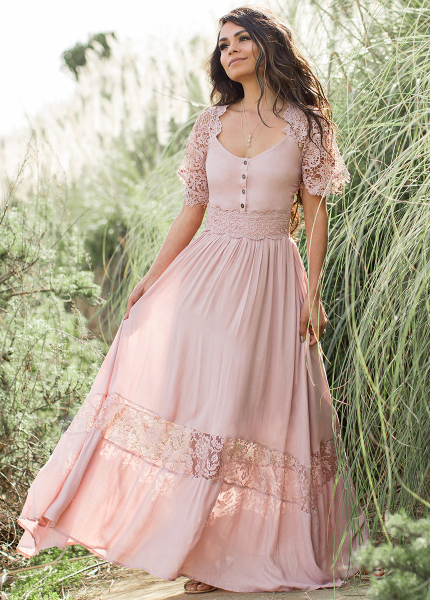 Who doesn’t love a good cold-shoulder moment? From the full skirt with lace panels to the stunning neckline, this dress is a great option for looking effortless and staying comfortable all Sunday long. Dress it up with matching accessories or leave it on its own; it’s a boho-inspired stunner either way.