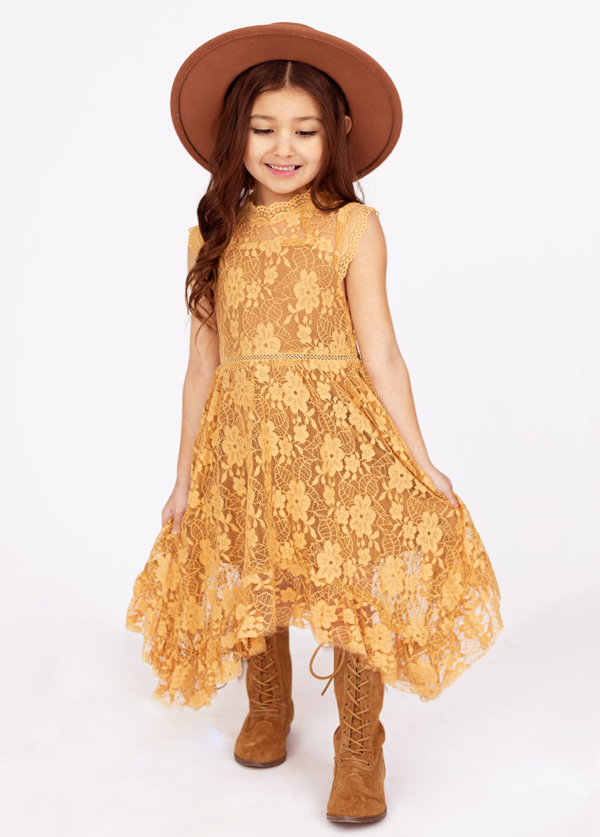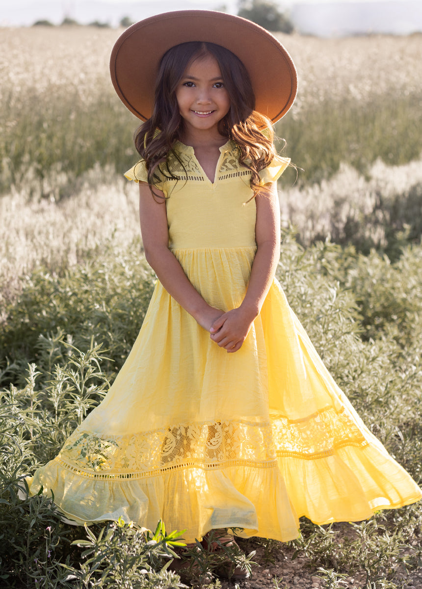 The Cassia dress is delicate, simple, and floaty, making it the perfect flower girl lace dress for your garden wedding or spring picnic nuptials. With a soft and floaty high-low maxi skirt, fluttery sleeves, delicate lace bodice, and accented crochet trim, this gorgeous dress is the perfect pairing for beautiful bouquets and lace petals. Top it off with a wide-brimmed hat for the sweetest garden-ready flower girl ensemble.