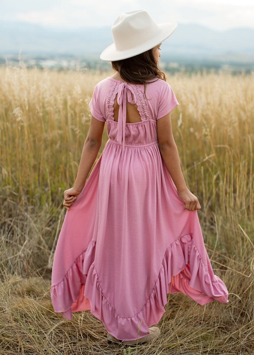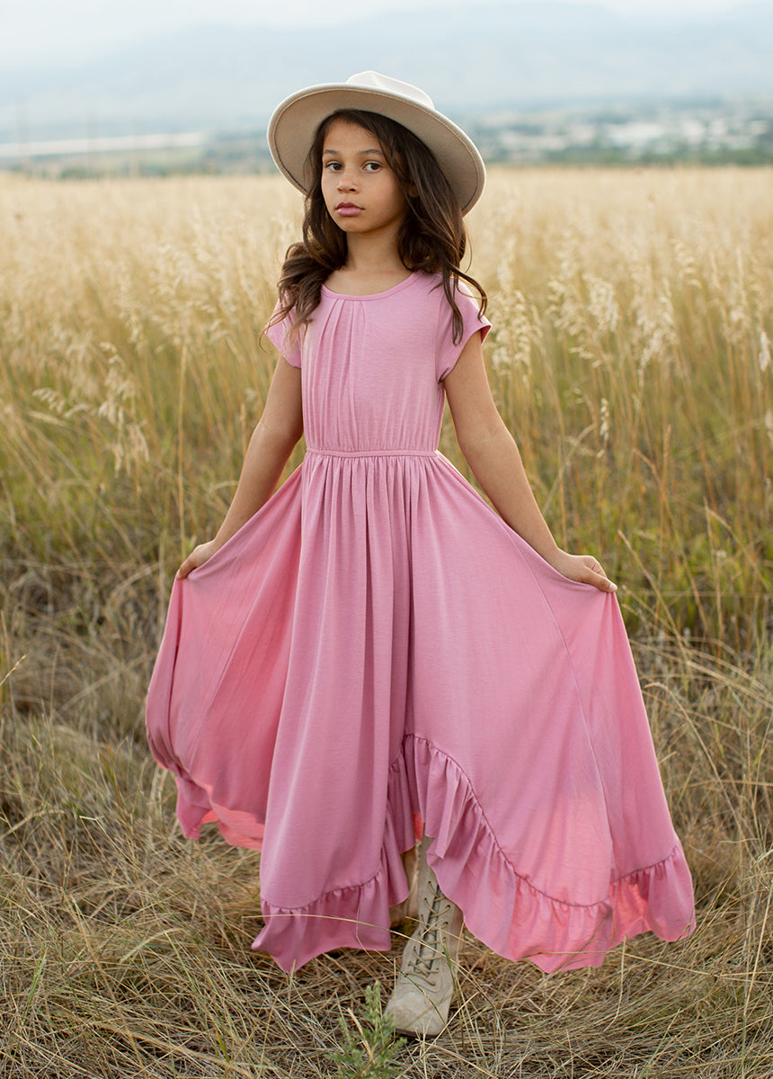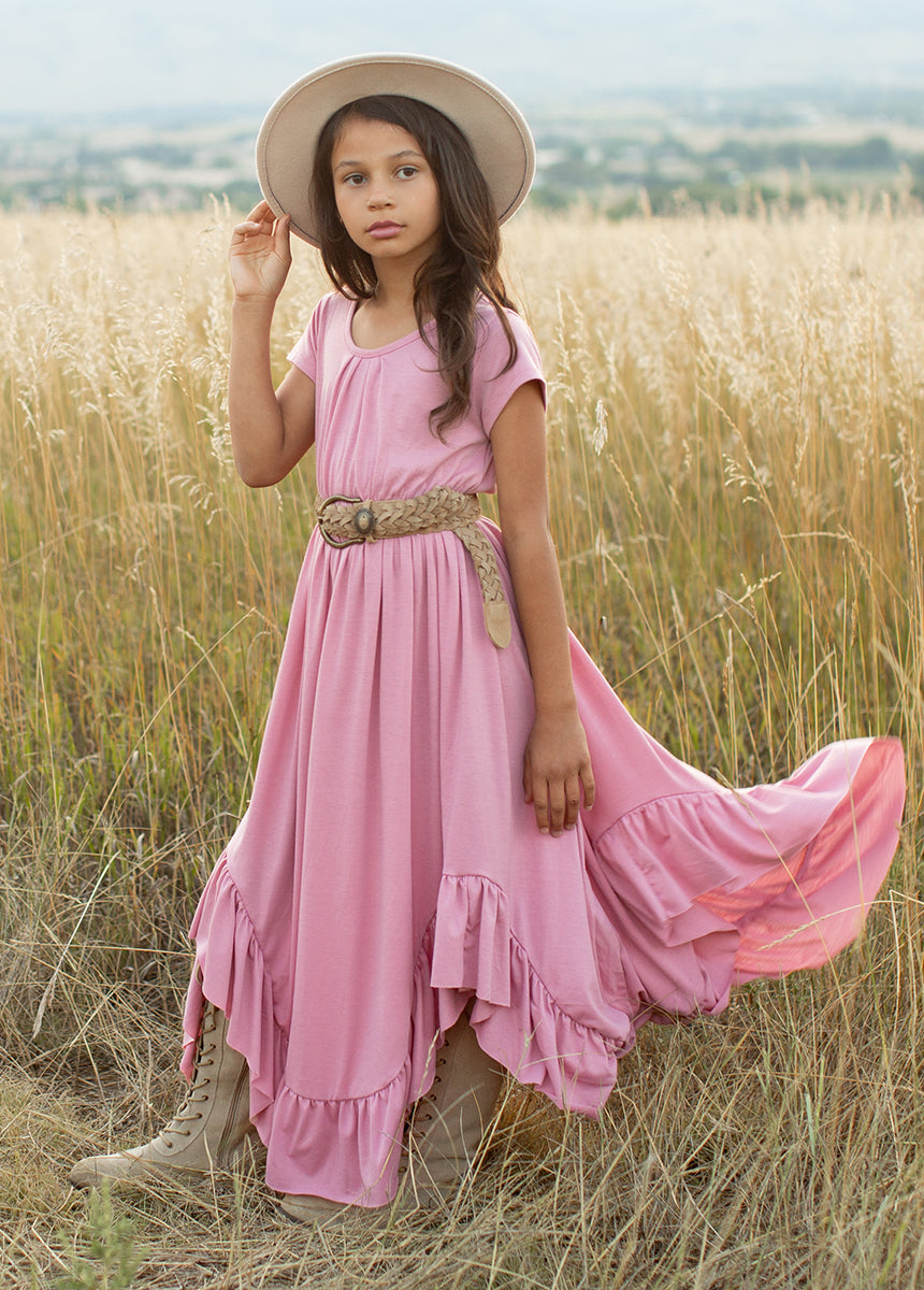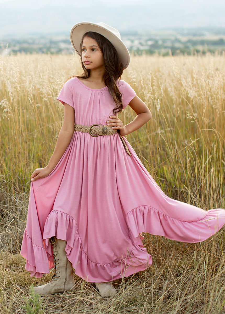 My niece wanted a long pink dress. Remembering how much I loved a full skirt as a child, I ordered the Braelyn in Pink. As you can see, though it was a bit long, she will love wearing this for quite a while.