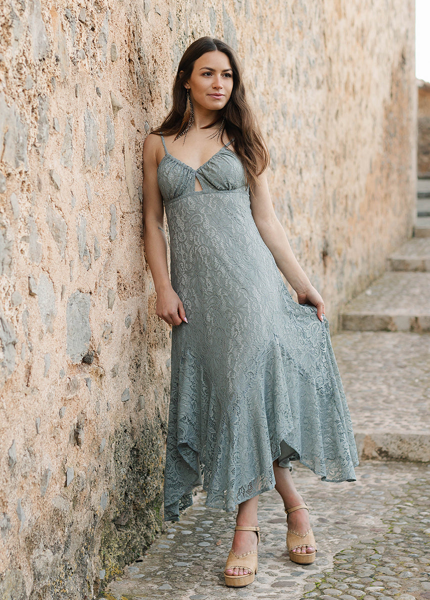 Allona Dress in Dusty Teal