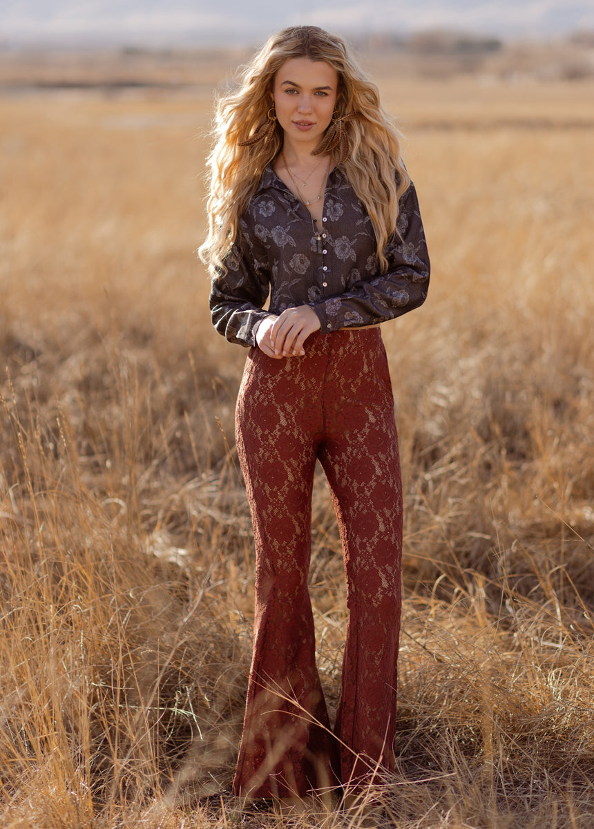 Elevate your style with the Abril Pant, the ultimate blend of comfort and sophistication. Featuring a full-length design and a fully lined interior, these pants offer a flattering fit for any occasion. The innovative invisible side zipper ensures a sleek silhouette, while the stretchy fabric adapts from skinny to flare for versatile wear. Adorned with a stunning rose lace print, the Abril Pant is crafted from a high-quality blend of 90% Nylon and 10% Spandex for ultimate comfort. Upgrade your wardrobe today and enjoy the effortless elegance of the Abril Pant!