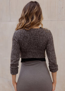 This chic cropped sweater features a V-neckline that adds a touch of effortless sophistication. Designed with long sleeves and finished with self-fabric bound edges, it delivers both comfort and a polished look. The two-button front closure with real shell buttons brings a refined, natural detail that elevates its style. A double needle coverstitch hem ensures durability while keeping the silhouette sleek and modern. Perfect for pairing with high-waisted skirts or jeans, this versatile piece is a must-have for any boutique wardrobe.