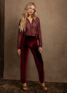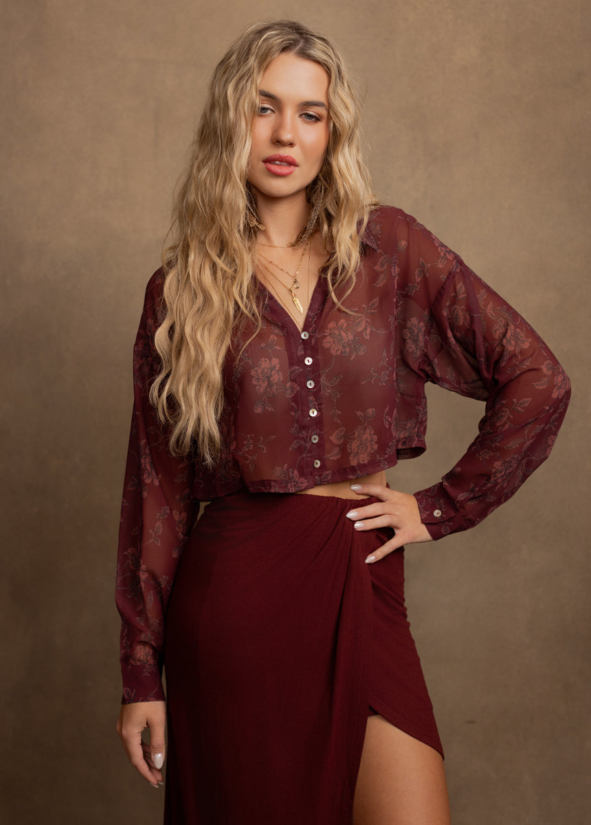 Agnecia Top in Burgundy Floral Print