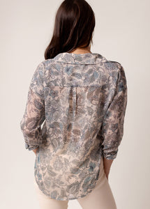 Discover the perfect blend of style and comfort with our button-up relaxed fit top, designed for effortless elegance. Featuring buttons with elastic loops and a drop shoulder for a relaxed, laid-back look, this top is made from a lightweight, woven fabric for ultimate breathability. The sheer material adds a touch of delicate charm, while the beautiful floral print brings a fresh, feminine vibe to any wardrobe. Ideal for layering or wearing on its own, this versatile top is perfect for both casual outings and dressier occasions. Elevate your collection with this must-have addition from our women's clothing boutique.