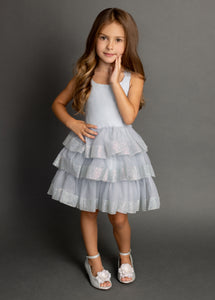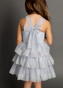Introducing the perfect dress for your little princess! Our enchanting dress features charming tulle ruffles, a delightful tulle bow detail, and just the right amount of sparkle. Ideal for making every moment magical, this dress combines elegance and whimsy, ensuring your child shines with every step.