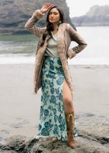 Elevate your wardrobe with the Allurah Skirt in Peacock, a stunningly embroidered piece that exudes femininity. This maxi-length skirt features a timeless silhouette, effortlessly combining elegance with a boho vibe. Designed for comfort, it includes a stretchy waistband and an invisible side zipper for a flawless fit. A stylish leg slit adds a touch of flair, while the full-length lining ensures a sophisticated look. Crafted from a premium blend of 60% Polyester and 40% Polyamide, the Allurah Skirt is the perfect choice for any occasion.