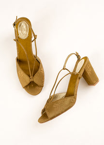 Step into enchantment with our Romantic Heels, designed to add whimsy and magic to your style. Featuring a stunning lace upper layered with metallic textured vegan suede, these heels create a captivating look. The genuine leather outsole with flocking ensures durability, while the metallic vegan suede piping and straps enhance their elegance. With an adjustable strap behind the ankle for a secure fit and ribbed satin lining at the insole for comfort, these heels are perfect for all-day wear. Standing at 3.5" tall with a 1.25" wide heel and accented with antique brass plating, these heels are a must-have for any fashionable occasion.