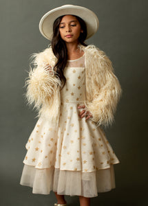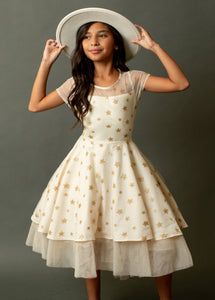 Dainty and festive, the Annalise features glitter tulle over satin with a slightly exposed tulle petticoat.