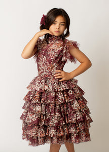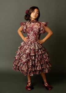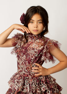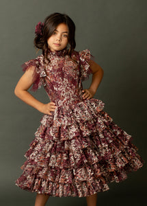 With cascading ruffles, dramatic sleeves, and lace details, this voluminous dress is sure to make a statement.