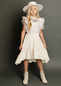 Introduce your little one to dreamy elegance with our lace and tulle top, inspired by the beloved Anouk Petticoat dress. The charming ruffle neckline adds a playful touch, while the structured ruffle sleeves enhance the overall design. Featuring a convenient back zipper and hook & eye closure, this top ensures easy dressing. The unlined yoke offers breathability and comfort for all-day wear. Perfect for special occasions or everyday adventures, this piece is a must-have for her wardrobe!
