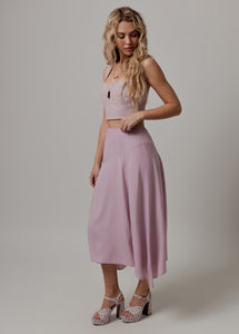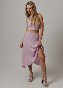 The Apple Maxi Skirt blends romantic texture with a modern, flowing silhouette. The waist seam connects to angled upper panels that shape the skirt beautifully through the hips. Vertical panel seams extend down toward the hem, creating a soft flare that moves gracefully as you walk. A gently uneven hem with curved shaping adds visual interest and a flattering finish. Crafted in semi-sheer fabric that subtly reveals the underlayer or a hint of leg, this boutique skirt brings feminine charm and effortless sophistication to any outfit.
