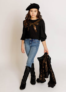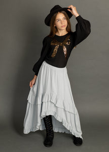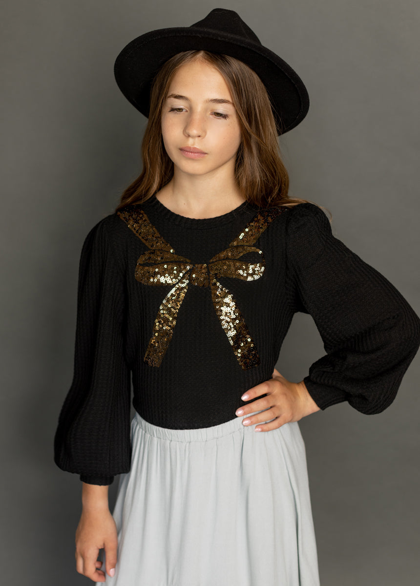 Elevate your little one's wardrobe with this charming basic, featuring a delightful sequins bow. Perfect for both everyday wear and special occasions, this versatile piece can be easily dressed up or down. Combining effortless style with a touch of sparkle, it’s an essential addition to any young girl’s collection, offering both elegance and practicality for any event.
