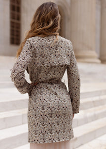 This statement jacket is designed with a modern asymmetrical collar and sleek collar stand that instantly elevates your look. The unique asymmetrical front panels create a chic, fashion-forward silhouette perfect for layering. A back overlay yoke adds subtle structure and a touch of tailoring detail. Self-fabric belt loops allow you to cinch the waist with your favorite belt for a more defined, feminine fit. Stylish yet versatile, this boutique jacket is the perfect outerwear piece to transition effortlessly from day to night.