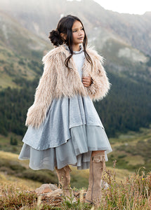 A darling velvet dress for every holiday occasion. Features an open mock turtleneck and tulle petticoat.