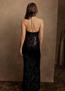 This effortlessly elegant dress combines modern charm with a touch of feminine detail. It features a clean-finished neckline with a soft inner lining for a smooth, polished look. The adjustable spaghetti tie halter strap allows for a custom fit, while gentle gathering at the bust and waist flatters your shape beautifully. An exposed centre-back zipper adds a hint of edge to the design. Finished with a delicate merrow edge hem, this dress is perfect for both daytime events and evening occasions.