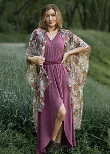 The Avalon Duster in Ecru Floral has a beautiful pattern and can be worn as the duster styled in photo but also as a scarf, accent belt and in other creative fashions!