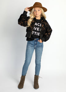 Get your little one ready to rock in our Avery Dark Distressed Skinnies! These jeans are the perfect mix of easy and stylish, making them a versatile addition to any wardrobe. Dress up or down, these skinnies are sure to be a favorite.