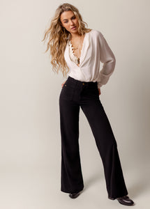 These chic high-waisted trousers are designed to flatter your figure while offering effortless style. Crafted to fit slim through the hip, they create a sleek and elongated silhouette. The dramatic wide-leg cut adds a touch of sophistication and movement to every step. Perfect for both casual outings and elevated occasions, they pair beautifully with tucked-in tops and statement accessories. A must-have wardrobe staple, these versatile wide-leg pants bring timeless elegance to any boutique collection.