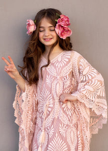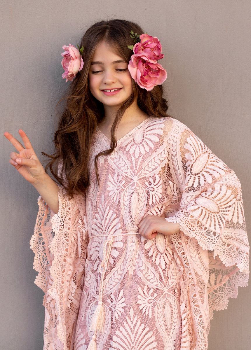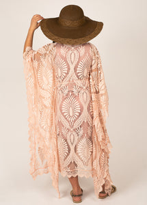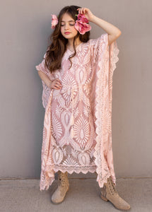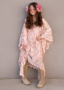 It's all about the texture and sleeves in this boho, lace, kaftan dress.