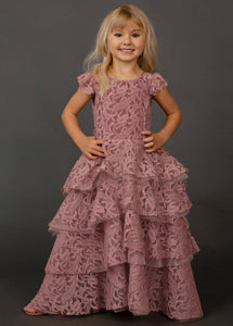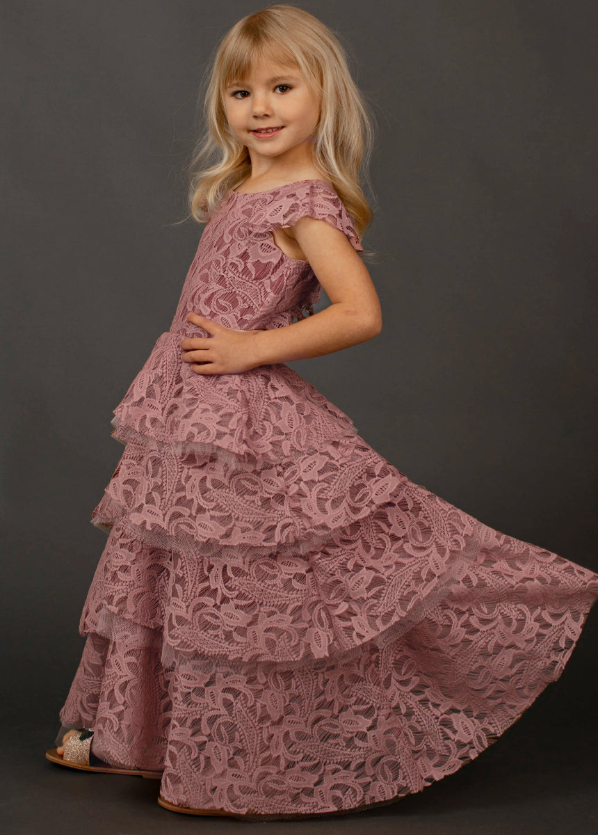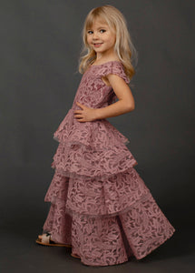 With cascading ruffles, back and lace details, this voluminous dress is sure to make a statement. Inspired by our Anouk dress.