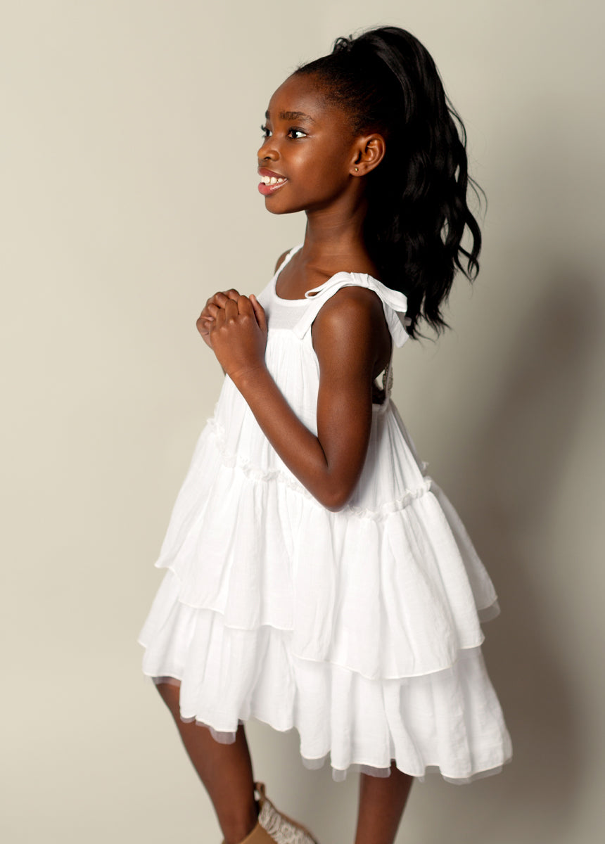 Beautiful dress for my 8 yr old daughter. The hot pink colour is stunning and the fabric is soft and pretty. There’s lots of fabric in the ruffled skirt which makes it look extra frothy and twirly. My girl loves it!!