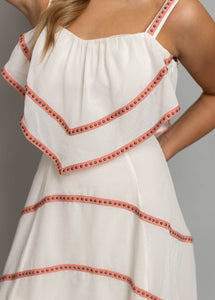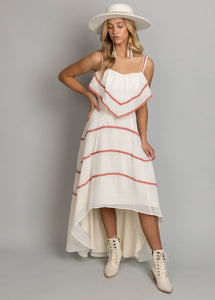 Embrace elegance and sophistication with the Brianda Dress, a striking piece designed to make a statement on any occasion. This stunning dress features intricate detailing that elevates its timeless silhouette. The sweetheart neckline and deep scoop backline add a flattering and feminine touch, while the flounce ruffle overlay and extreme high-low skirt create dramatic movement with every step. Add this elegant piece to your wardrobe and step into spring with timeless style.