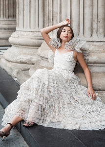 - Gathered voluminous tulle shoulders