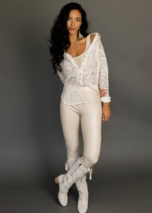I wanted this too to go over a bralette that I purchased here at Joyfolie. I also bought the ecru pants that go together in the picture because I love the look. I love how soft it is and just sheer enough that it has enough coverage for an adult woman who wants to look good at her age. I can put on a colored lace turtleneck and wear the pecan tall boots for a different look. So many options with Joyfolie clothing. It’s not only relevant but it has many options. Thank you for another piece that I love.
