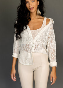 This top is so much more comfortable than I imagined! The lace is sooo soft and it's stretchy making it super comfortable! A step up from your typical white button up shirt!