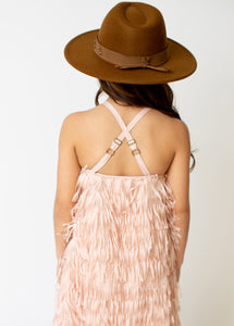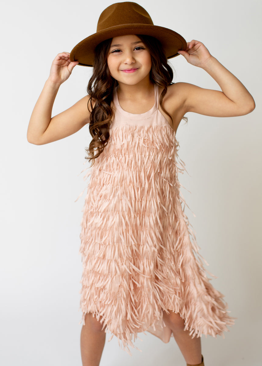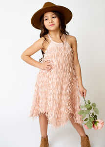 Unleash your inner wild child with the Caleo Dress in Desert Shell! This playful a-line dress features fringed details for added fun and movement. Embrace the fringe and let the good times roll!