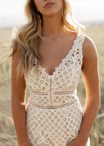 Get ready to strike the perfect balance of femininity and boho elegance with the Caspian Dress in Cream. This dress features intricate design and refined detailing, effortlessly elevating your style while bringing out your playful and fun side.