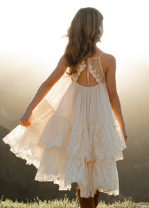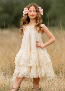 I ordered this dress for my daughter to wear for family photos! She’s 21 months and pretty tiny so I was worried about it fitting. I decided on this dress since it wasn’t supposed to be full length, so on my little one it hit the ground and actually worked perfectly! Our photographer said she looked like a little forest fairy! I love it so much on her and am excited for her to grow into it more!