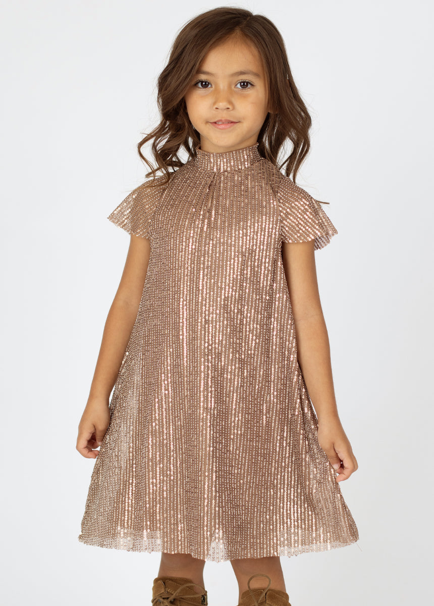 Must have dress. My daughter instantly fell in love it. The armpit area was perfect for movements. The sequins stayed intact and didn’t bother her when she sat down.