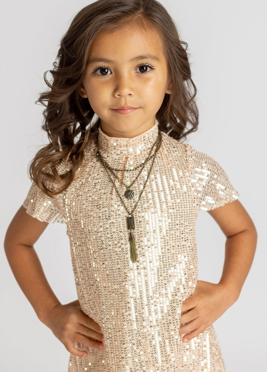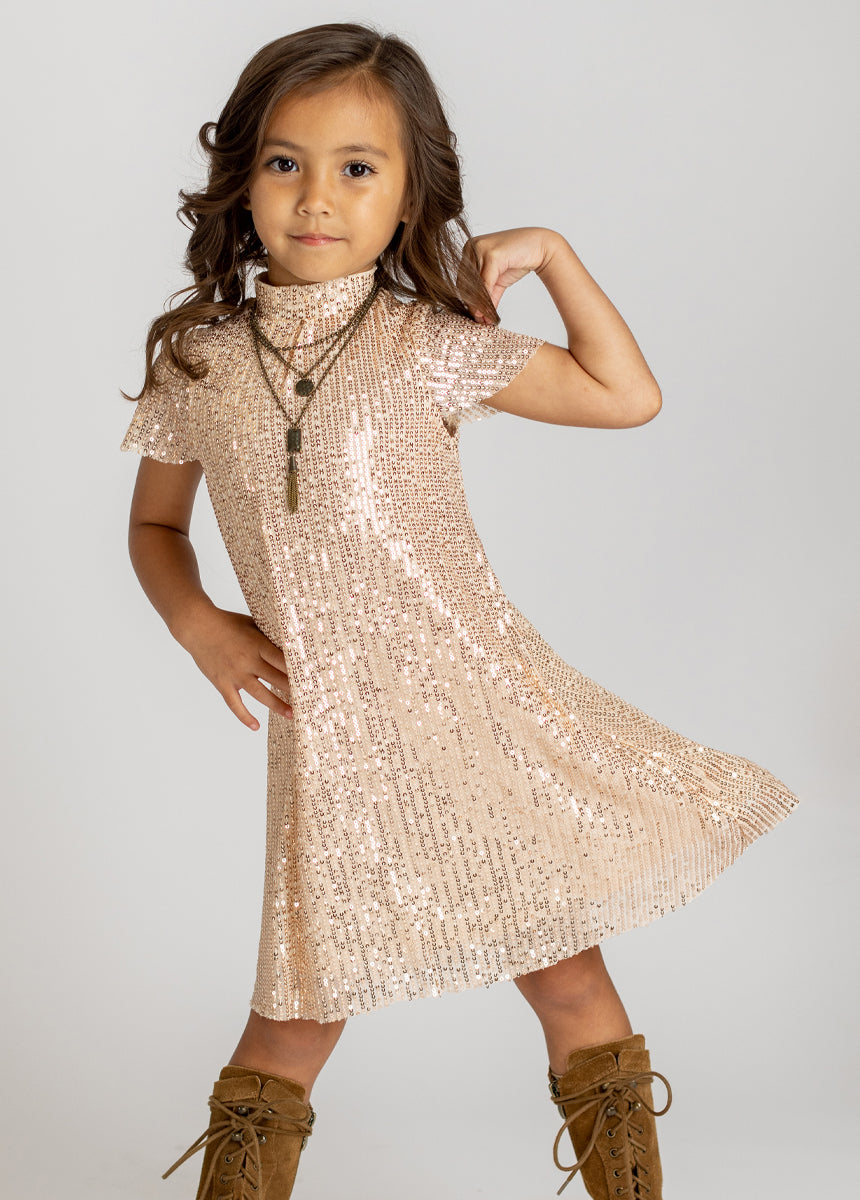 Must have dress. My daughter instantly fell in love it. The armpit area was perfect for movements. The sequins stayed intact and didn’t bother her when she sat down.