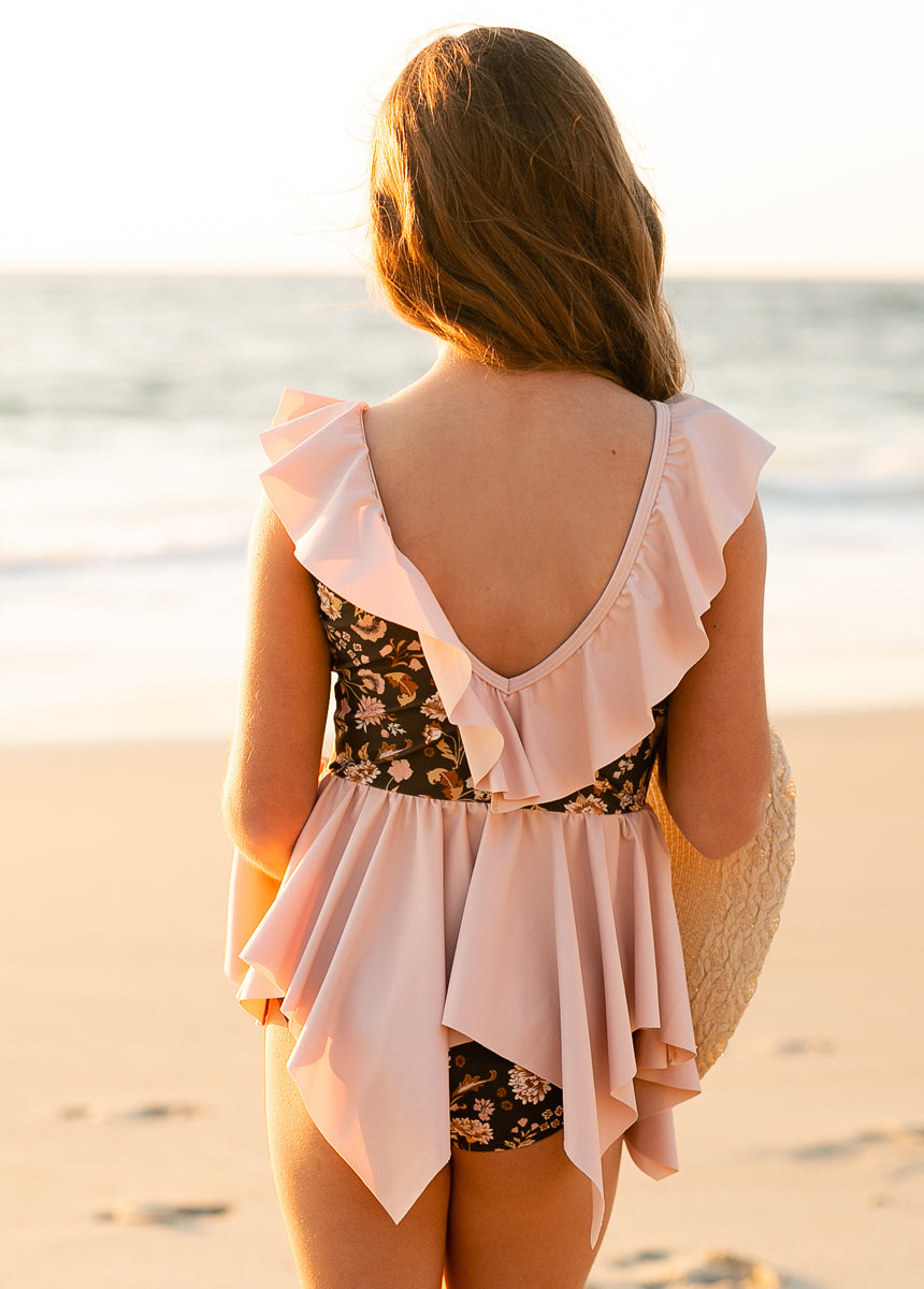 This swimsuit is really nice and has a super cute design! I appreciate the little cover-up feature; it helps keep my daughter comfortable while she plays in her bathing suit. The pattern is beautiful, too, and we've received quite a few compliments on it. Overall, it’s a great choice for both style and comfort!