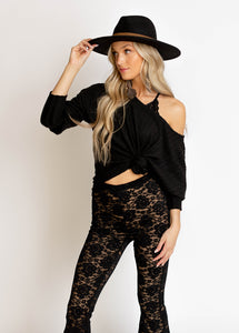 The Ciara Top in Black is an essential addition to every wardrobe, crafted from soft and versatile fabric. This go-to top effortlessly transitions from casual to chic, making it perfect for any occasion. Featuring a wide boat neckline, it can be worn on or off the shoulder for versatile styling options. The extended ribbed cuffs and drop tail hem add a trendy touch while providing comfort. Elevate your outfit by pairing the Ciara Top with a skirt for a dressy look or with jeans for a relaxed vibe!