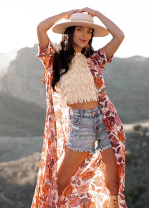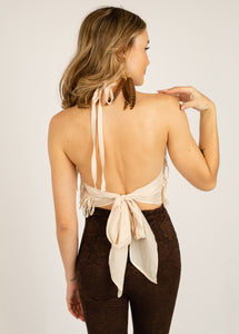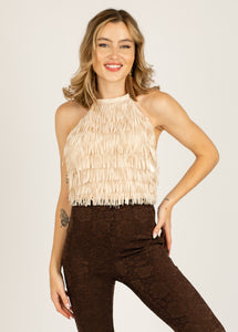 Make heads spin in the fringe Cleo Top in Ecru! Whether it's a beach day or a night out with pals, you'll rock this top with ease. This fun halter top is part of a matching set - pair it with the Cleo Skirt for a full ensemble!