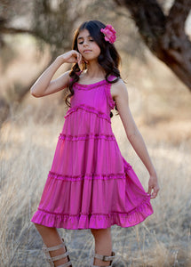 The Darana dress is vintage-inspired, tiered ruffle dresses designed for a soft, feminine look. A lightweight, sleeveless white dress with delicate lace trim and tiered ruffles. The adjustable straps provide a comfortable fit, while the flowy silhouette creates an effortless, airy feel. Ideal for a fresh, summery look. The gentle ruffles and delicate detailing add a touch of whimsy, making it perfect for special occasions or casual elegance. The lightweight, shimmery fabric enhances its dreamy and ethereal feel, making it a great choice for a soft, romantic style.