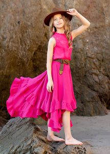Don't miss out on our elegant Fuchsia Delfinne Top, complete with delicate lace and a high neck. Pair it with our Sena Skirt for a complete look and elevate your wardrobe for any occasion.