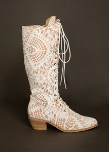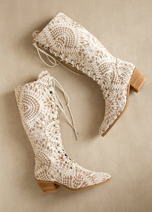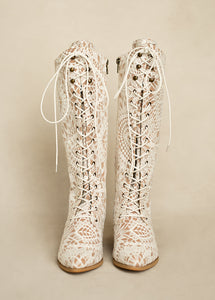 These striking lace-up boots are designed to infuse your bridal ensemble with an enchanting touch of bohemian allure.