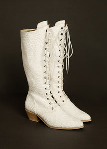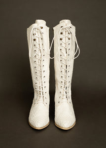 These striking lace-up boots are designed to infuse your bridal ensemble with an enchanting touch of bohemian allure.