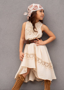 Embrace the lace in this delicate high-low maxi dress.