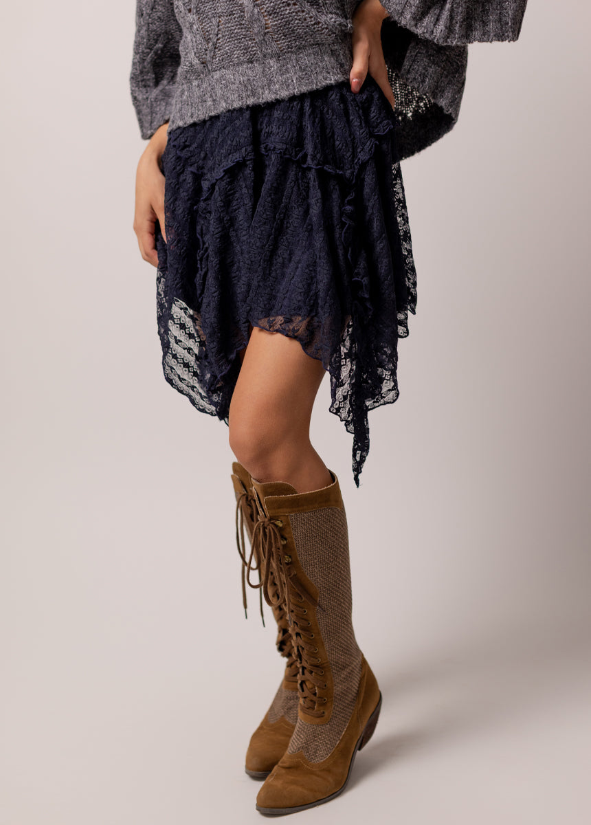 The Edna Skirt brings effortless movement and charm to any outfit. It features a high-stretch, low-resistance elastic waistband that feels soft and comfortable while giving you a flexible, flattering fit. Sewn-in flounce detailing adds beautiful flow with every step, creating that boutique-worthy feminine touch. The back is cut slightly longer than the front for a subtle high-low effect that keeps the silhouette chic and balanced. Finished with a handkerchief hem, this skirt delivers a stylish, modern look that’s perfect for dressing up or keeping casual.