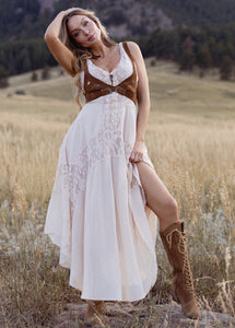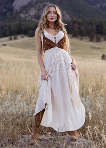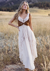 This tank dress is designed with a deep V-neckline and a low scoop back that give it a  feminine feel. The flowing saddle hem cut adds beautiful movement, making it just as perfect for a casual day out as it is for a night with friends. Functional shell buttons down the front add a touch of charm, while delicate lace piecing brings soft, romantic detail. An invisible zipper at the back keeps the look clean and easy to wear. Effortless yet stylish, this boutique dress is a go-to piece you’ll reach for again and again.