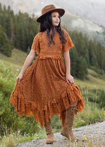 The Eliana dress in Spice is a beautiful and very high quality dress! It also passes the spin test with flying colors. My 5 year old daughter is in size 5T clothing and the size 5 dress was slightly long on her torso but that was no problem at all. It fit perfectly otherwise. The only thing we had any issues with was the neck hole being a bit tight. But it wasn’t too bad. She said the dress was very comfortable too. We also greatly appreciate the little pendant and notebook that were sent with her dress!