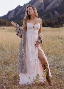 The Elinda Dress is a stunning blend of vintage charm and contemporary elegance. Its flowing silhouette and delicate details create a graceful, feminine look. The fitted bodice seamlessly transitions into a gently flared skirt, flattering the figure with romantic ease. The dress features intricate lace accents and subtle floral embroidery, adding a touch of timeless beauty. Crafted from soft, breathable fabric, it ensures all-day comfort, making it perfect for garden parties, weddings, or sunset strolls. Pair it with strappy sandals and dainty jewelry for an effortlessly chic and enchanting look.