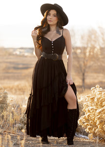 I wore this dress to a Yellowstone themed dinner party. I got so many compliments! The red color is gorgeous and the extra material at the bottom of the dress was just right. The tie in the back was hard to tie without leaving the back part of the underarms a little baggy and there was a hole in the dress when I got it. Good thing it wasn't visible. I love this dress!!