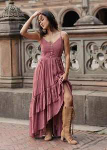 I wore this dress to a Yellowstone themed dinner party. I got so many compliments! The red color is gorgeous and the extra material at the bottom of the dress was just right. The tie in the back was hard to tie without leaving the back part of the underarms a little baggy and there was a hole in the dress when I got it. Good thing it wasn't visible. I love this dress!!