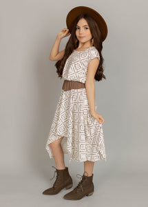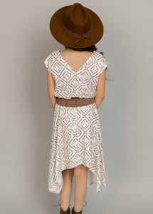 The Fenlie Dress is the perfect blend of comfort, charm, and effortless style. With its sweet sweetheart neckline and relaxed, slouchy bodice, it offers a flattering fit that lets her move freely and gracefully. Delicate lace trim along the wrap-style back enhances the feminine design, while the gently curved yolk waistband adds a subtle yet elegant structure. Whether she's twirling or playing, the Fenlie Dress brings joy to every moment.