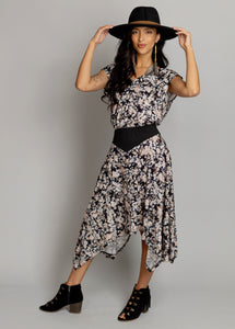 Effortlessly chic and full of understated elegance, the Fenly Dress is a timeless piece that combines comfort with sophisticated details. The wide V-neckline and slouchy waist create a relaxed, flattering fit, while the design allows for the option to wear it off the shoulder for a more laid-back, feminine look. A pointed contrast waistband gently defines the silhouette, complementing the free-flowing, full skirt.
